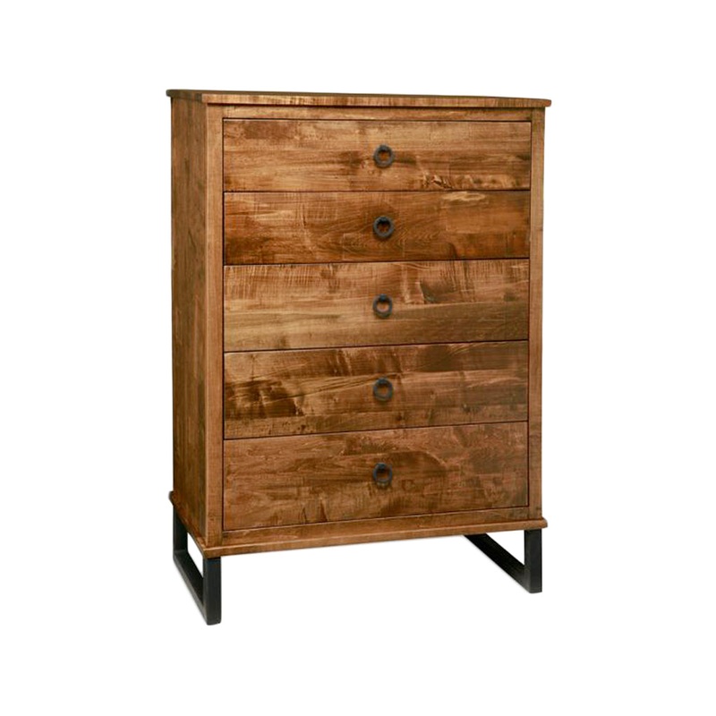 The Cumberland 5 Drawer Chest comes in your choice of 42 wood finishes available on Buxton Cherry, Solid Maple, Solid Oak, Brushwork Maple and Heritage Maple.Also available with tapered foot option in place of the steel base.