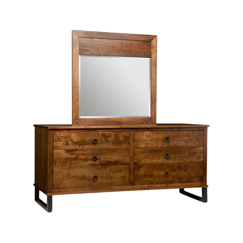 The Cumberland Double Dresser by Handstone is a six drawer dresser that features a solid wood framed mirror. The drawers are fully varnished inside and out and reinforced with triple ply bottoms for added strength. The Cumberland Double Dresser is customizable with your choice of hardware and features tapered foot or steel base options.