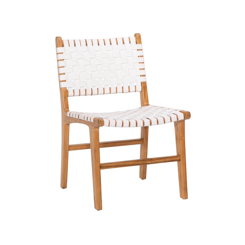 Dale Top Grain Woven Leather With Teak Frame Dining Side Chair – Midcentury – Dining Chairs – by Karina Living-DOV25003WH