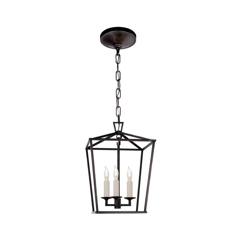 The Darlana Mini Lantern is a classic shape in a compact size. The Darlana lantern sports a metal caged frame of negative space with exposed bulbs that illuminate it from within. The shape of the fixture is inspired by iconic street oil lanterns of an earlier era. This fixture suspends from a chain link and is anchored by a round metal canopy.Classic yet chic, useone or more above a kitchen island for a classic aesthetic with historical context. TheDarlana Mini Lantern is part of the Chapman & Myers collection.