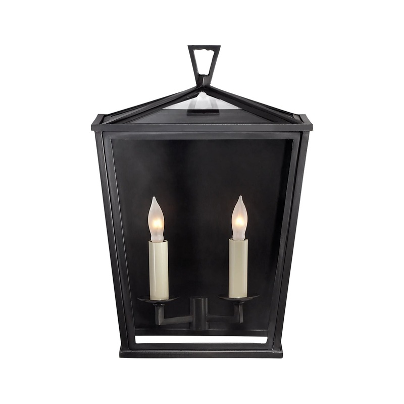 The Darlana Small 3/4 Lanternis chic and simplistic, making a perfect light source for your outdoor spaces.This lantern features a finely wrought bronze frame, complemented by clear glass panels and two interior candle lights that sit side by side.The Darlana lanternimpresses with a blend ofstunning old world charm and modern execution. The DarlanaSmall 3/4 Lantern is part of the Chapman & Myers collection.