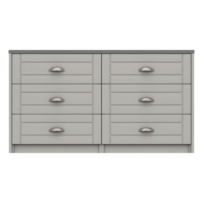 The Darwin 6 Drawer Wide Chest is perfect for a wide range of dcor styles. This chest of drawers features a distinctive routed drawer style, complete with stylish metal cup handles and linen-look drawer liners.Please note, unfortunately we can not deliver