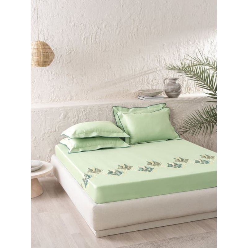 Exquisite Embroidered King Size Bed Sheet Set with beautiful design & refreshing Colors. A unique combination of superfine Combed Cotton & finely crafted embroidery designs offers sheer comfort & emphatic look. Make your home interiors look modern and chic