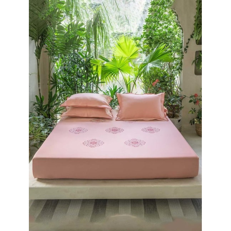 DDECOR Live Beautiful Excellence IX Pink Cotton 210 TC King Bedsheet with 2 Pillow Covers