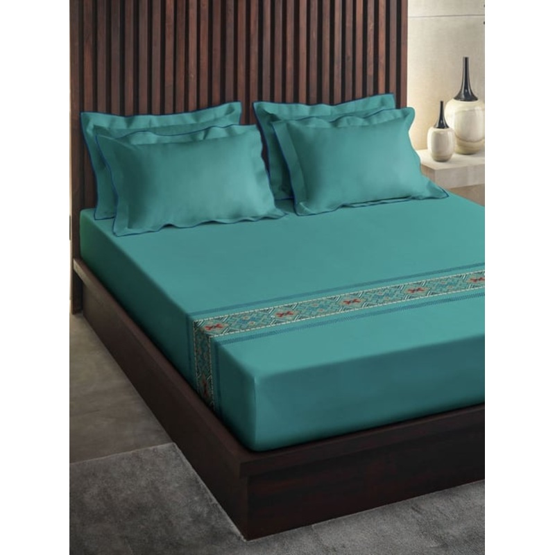 Exquisite Embroidered King Size Bed Sheet Set with beautiful design & refreshing Colors. A unique combination of superfine Combed Cotton & finely crafted embroidery designs offers sheer comfort & emphatic look. Make your home interiors look modern and chic