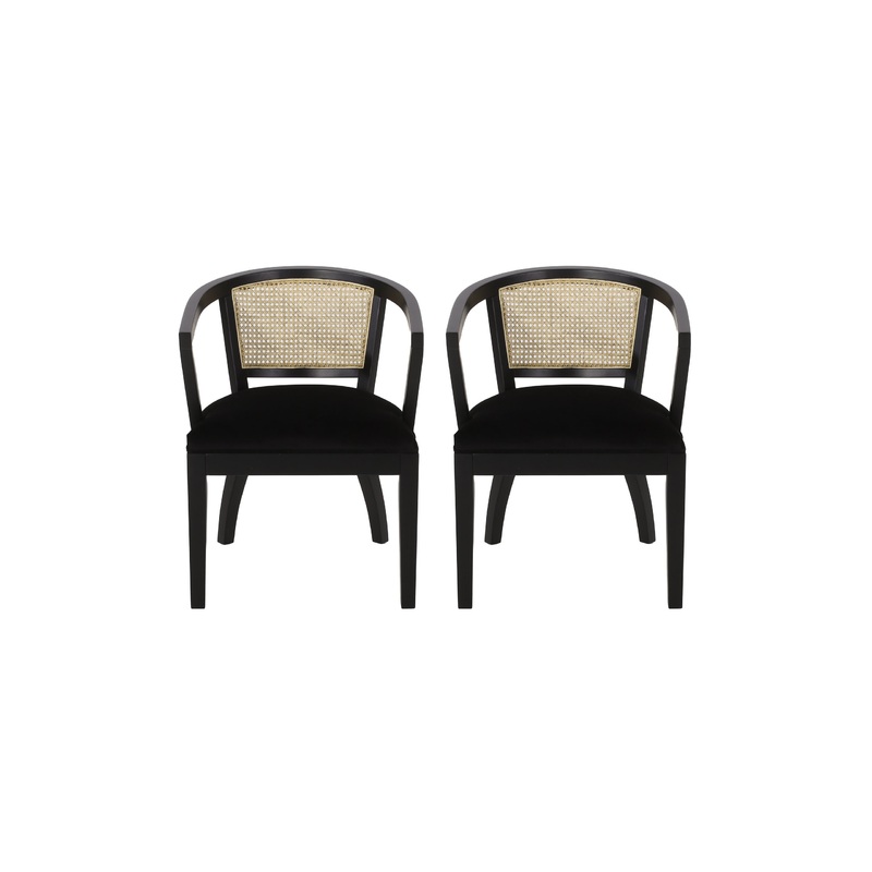 Tie your dining room together effortlessly with this sophisticated and beautiful dining chair set. These two lovely chairs offer classic shapes that effortlessly invite you to pull up a chair. Rich wood frames provide a natural touch, while smooth, luxurious upholstery makes a refined addition. With wide silhouettes, soft curves, cane web backrests, and tapered legs, these chairs will complement any modern or traditional design scheme. Pair them with a coordinating table or opt for an eclectic look. These chairs make everyday dining truly delightful.
