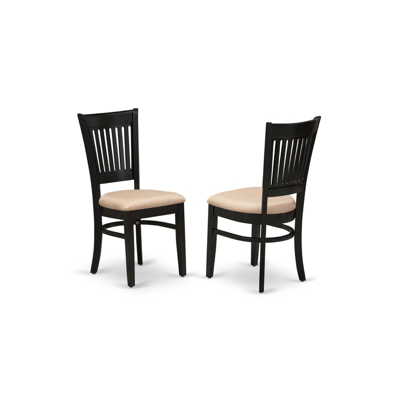 -Fabric dining chairs set features comfortable Linen Fabric seat and Black Finish. Durable Asian Solid wood vertical slatted back and Stylish Legs, which produces the best high-class color collaboration to provide a high end, look to your dining room.