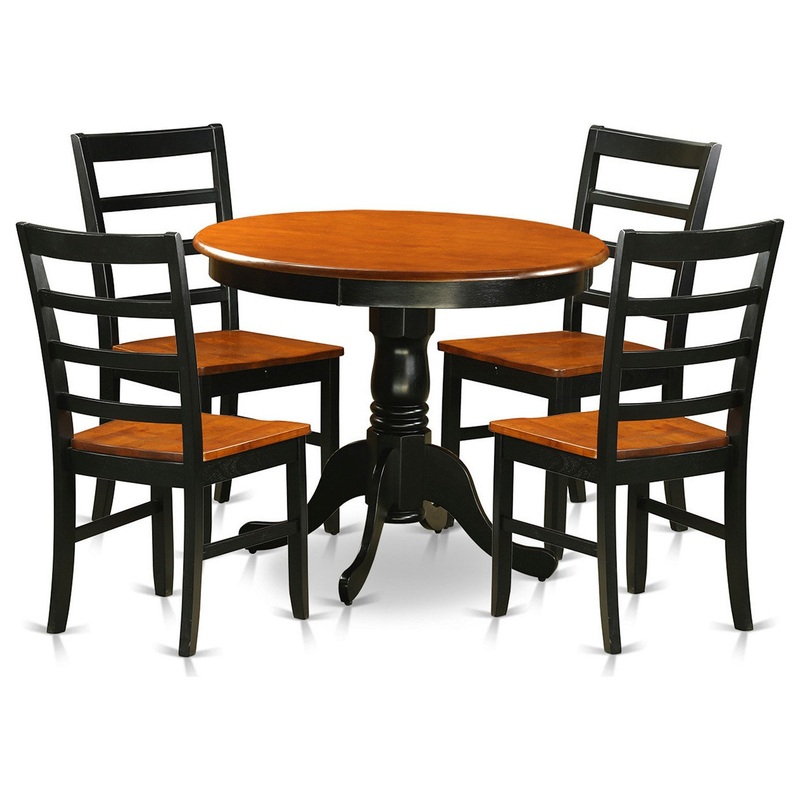 -Presenting a wonderful Dinette set to boost the beauty of dining-room with elegant style. This Dinette set includes 4 wood chairs and a wonderful round kitchen table that will increase the elegance of any dining room with their ageless style.