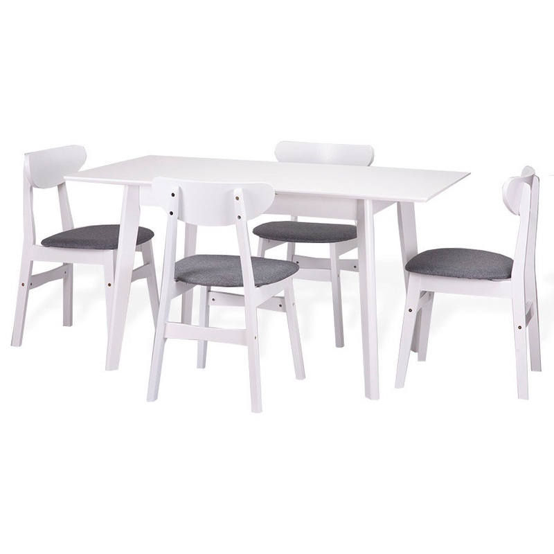 This modern 5-piece dining set is perfect for creating cozy dining in a breakfast nook or eating in the kitchen. This furniture which comes in a beautiful color, is suitable for any kind of kitchen or dining area. This five-piece kitchen dining set include