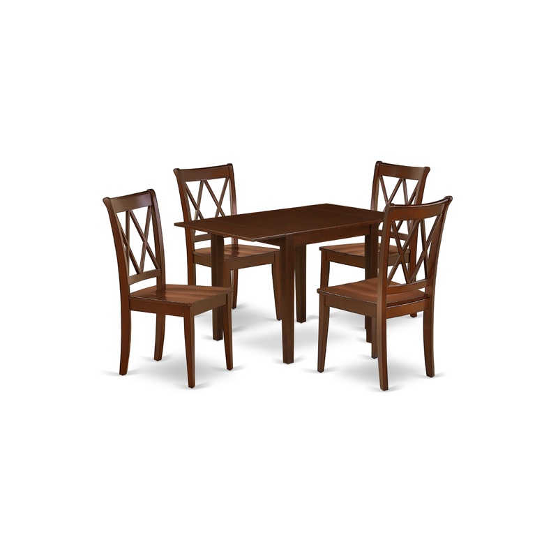 Deliver a stylish charm to your dining room with our amazing Kitchen Table Set 5 Pieces. This Kitchen table set offers four perfect wooden Chairs and a Lovely kitchen table. Leading-edge Double X-back design of these chairs for dining room will boost the attractiveness of any kitchen. Comfortable Mahogany hardwood Double X-back of these wooden Chairs will give excellent support to your back. The frame of these creative dining room chairs and two 9-inch drop leaves wooden dining table is constructed from High-Quality Asian Wood (Rubber Wood) which provides outstanding robustness and stability to these chairs for the dining room and wood table. The comfortable seat of these fabulous dining room chairs is made of High-Quality Asian Mahogany color solid wood, which gives an impressive glance and comfortable sitting experience. Leading-edge durable hardwood structure, comfortable wooden seat and Double X-back, dependable dining room table give Contemporary gaze to your kitchen, excellent stability to this amazing Kitchen dining table set, and comfortable support to your back. Because of the amazingly excellent measurements, this modern dining table set is very easy to carry, clean, assemble and modify its places, Classic styles of this exclusive kitchen table meet nicely with any home decor and a smooth wooden seat and back of these wood chairs will keep users comfortable.