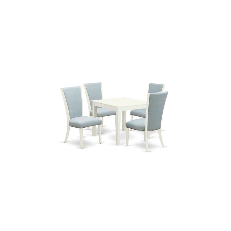 -This kitchen dining table set abilities comfy Linen Fabric Baby Blue color, the frame of these parson chairs and the beautiful Square kitchen table is built from high quality Linen White color finish wood, which produces the perfect quality color combination to give a magnificent gaze to your kitchen.