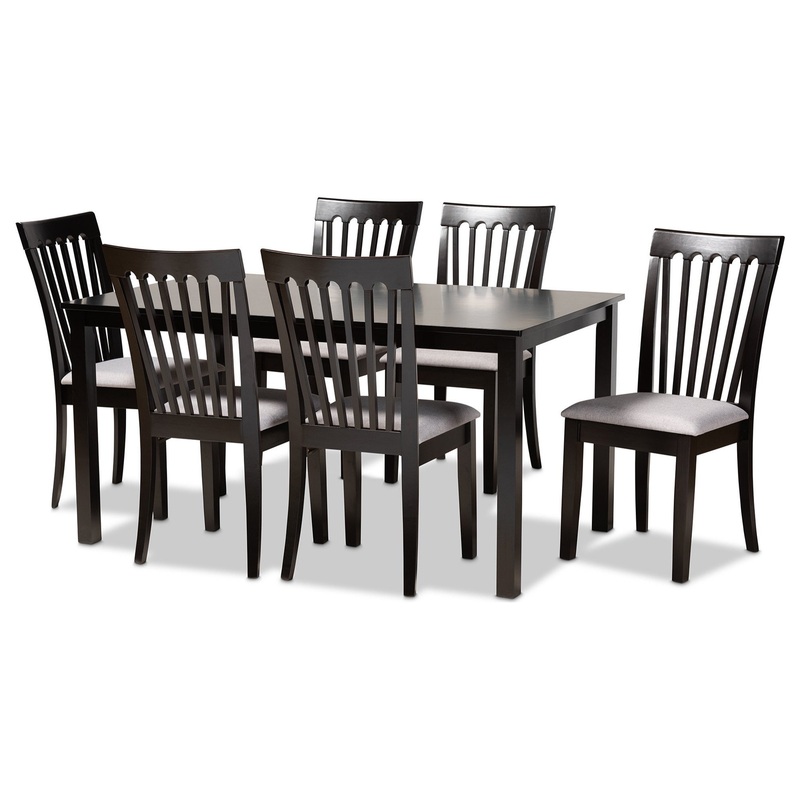 Dining Set, Rectangular Table & 6 Chairs With Slatted Back, Grey/Espresso Brown – Transitional – Dining Sets – by Decor Love