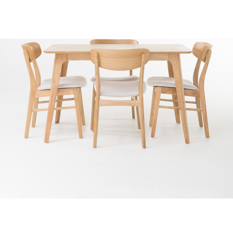 -With matching wood finishes, you cant go wrong with this dining set. Including one table and four chairs, this set is ideal for any home. -The mid-century style and smooth wood finishes of this set will compliment any dcor, so you dont have to worry about