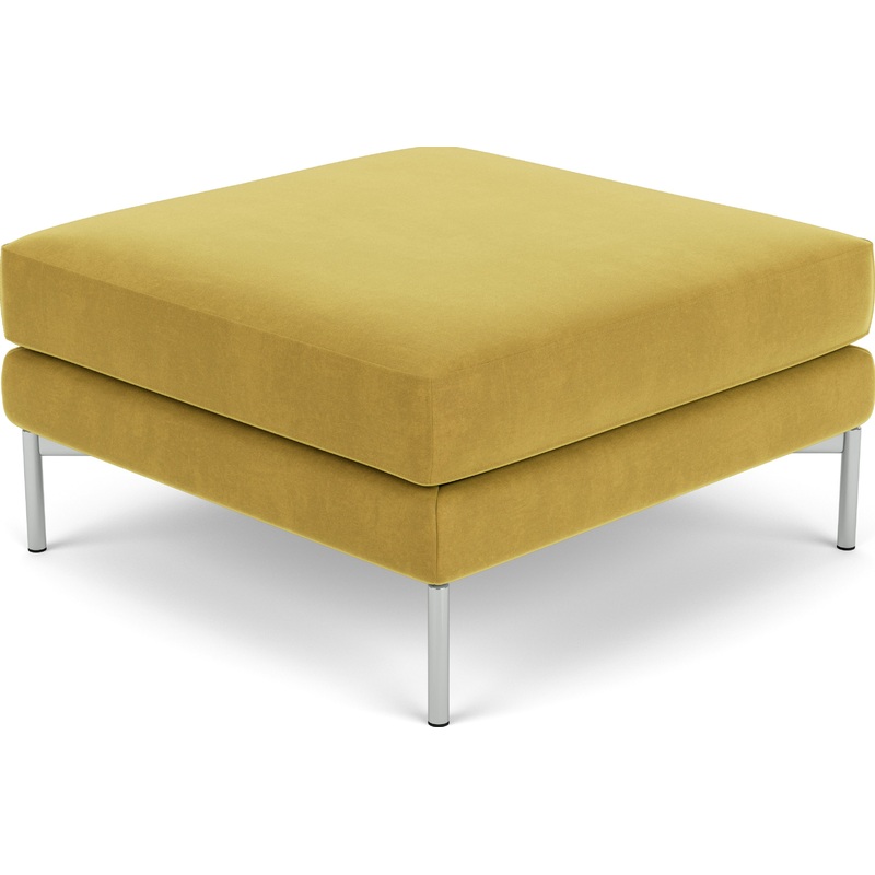 As its name implies, the Divina Collection can seem to transcend the constraints of time and space. Designed by Piero Lissoni in 2001, it could easily have been the work of a midcentury master. The Divina Ottoman expresses such a versatility. Precisely placed upon thin, chrome-plated steel legs, the Ottoman appears to hover above the floor. Its a great place for outstretched legs or ongoing jigsaw puzzles.