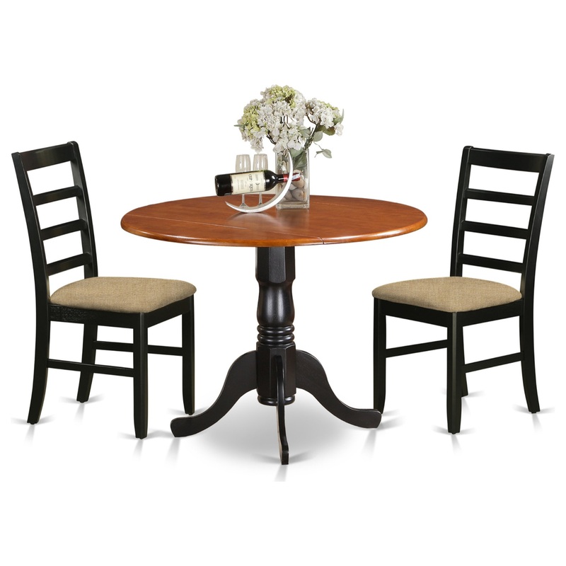 DLPF3-BCH-C 3 PC Kitchen Table set-Dining Table and 2 Microfiber Kitchen ChairsHeres presenting a top quality table and chairs set, inspired by contemporary design and made of original Asian hardwood. The set comes with four polished chairs accompanied by a round table with a finished top and is well suited for setup in dining-room and dining space alike. We take pride in all our products as none of them contains MDF, fly-wood, veneer or laminated wood and is only constructed from rubber-wood, the solid quality Asian hardwood.This is a high-quality Small kitchen table set that comes in 3 pieces, 2 chairs with either microfiber seats or solid wood seat and a round table top with pedestal stand. The best thing about this table is that it includes a leaf that can be folded and stored right under the table top when not being used. The table and chairs set is perfect for setup in the dining room or kitchen alike and may stand the wear and tear of regular usage without giving in.