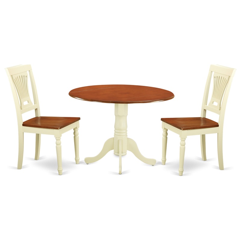 DLPL3-BMK-W 3 PC small Dining set-Dining Table and 2 Kitchen ChairsStunning drop leaf kitchen dining tables set illustrates the natural elegance of Asian hardwood polished in two different tones Black and Buttermilk & Cherry, that brings up complexity and formality. Round kitchen dining tables set come with a brilliant Black and Buttermilk & Cherry finish, allowing a stylish and sublte appearance. The round small table offers 42W X 30H size along with two drop leaves which you may easily use if you want extra space or everyone can just leave it dropped if you need a more intimate setting. Kitchen tables also emphasizes a Black round, solid pedestal even though the dinette chairs have very basic model.Fantastic kitchen dining chairs highlights hardwood seats to complement the straightforward yet subtle beauty of Buttermilk & Cherry finish.