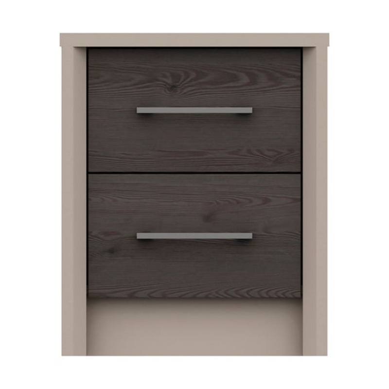 Crafted with a fired earth coloured carcass with complementing grey oak effect drawer fronts, the Dolan 2 drawer bedside table would make a stylish addition to any bedroom. This modern bedside features two spacious drawers complete with stylish brushed pew