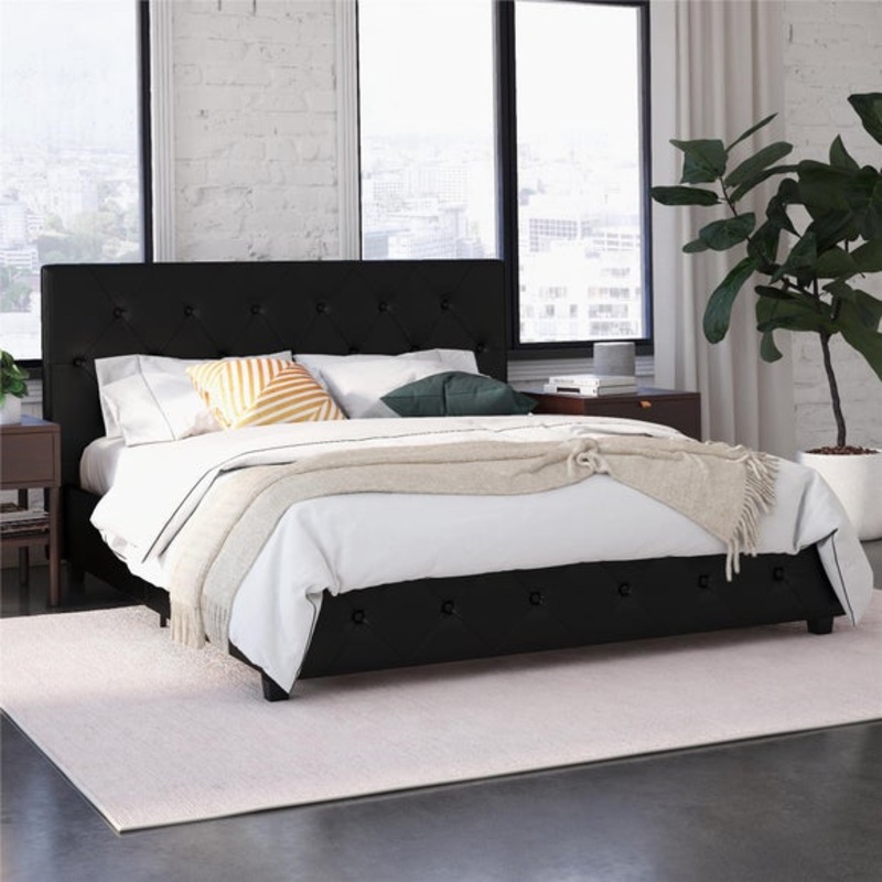 Contemporary BedUpholstered FrameEasy to AssembleAdd an element of class to your bedroom dcor with the contemporary luxury of the Dakota Upholstered Bed. Its sleek design features diamond button tufted detailing on the headboard, exuding modern chic. Avail