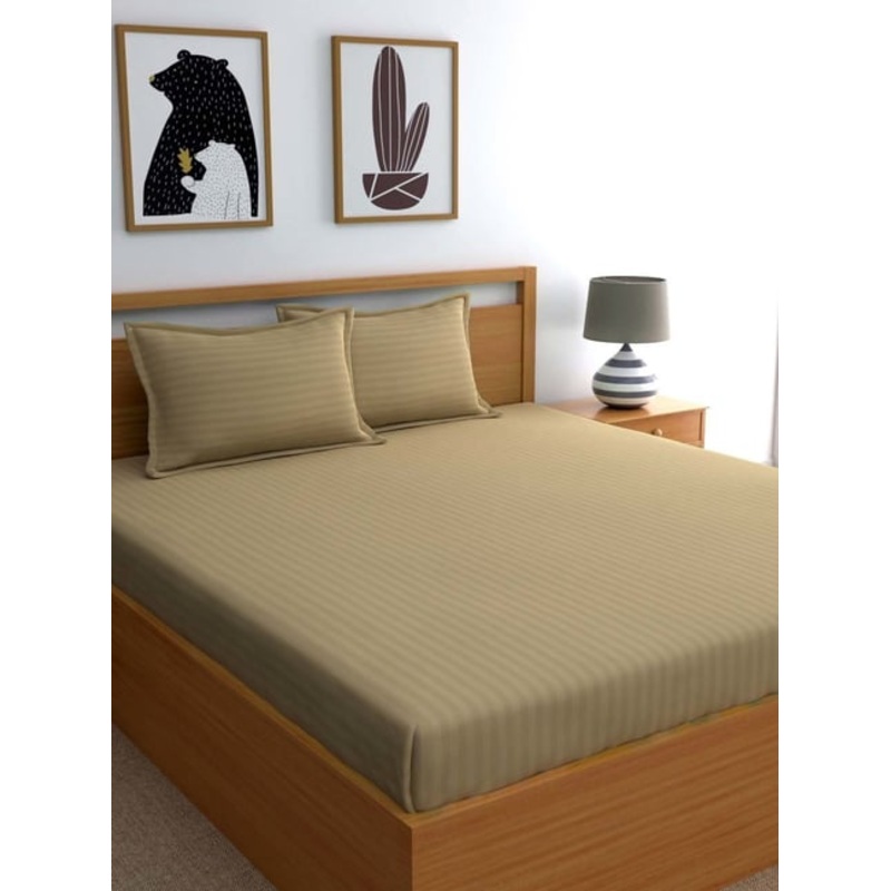 Flaunting classy and attractive tones, this bed sheet set from Dreamscape is sure to add a unique twist to your room. Crafted with care using cotton, this khaki bed sheet set with a thread count of 220 will be very soft against the skin. The striped pattern of the bed sheet set adds opulence to your bedroom. The set includes a double bed sheet and 2 pillow covers.