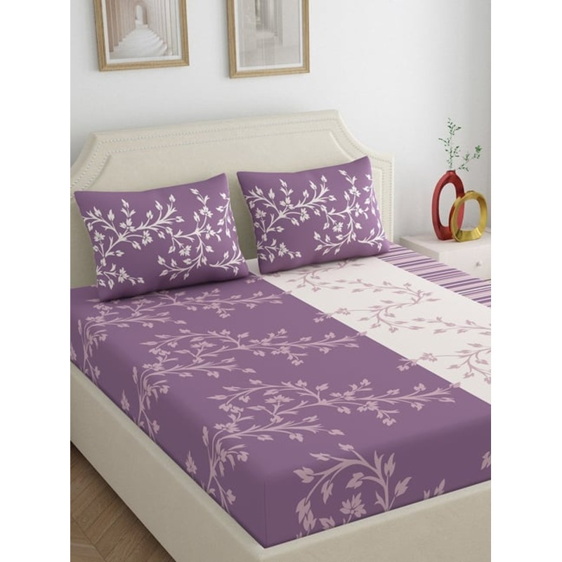 Transform your bedroom with the Dreamscape Purple Cotton Floral Bed Sheets Sets. Crafted from soft cotton, these sheets add a touch of elegance and comfort to your space.Disclaimer: All other items in the image are only for display purposes and will not be a part of the delivery content. Product colour may slightly vary due to photographic lighting sources. Country of Origin – India.