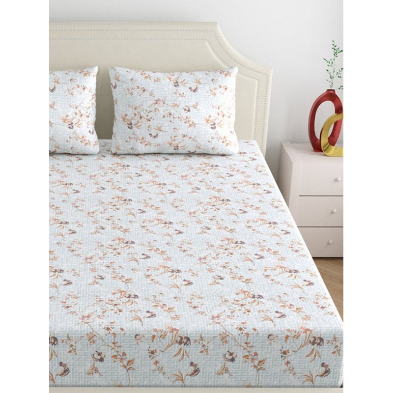 Enhance your bedroom with Dreamscape's Sea Green Cotton Floral Bed Sheets Set. Crafted from soft cotton, this set adds a touch of elegance to your sleep space. Disclaimer: All other items in the image are only for display purposes and will not be a part of