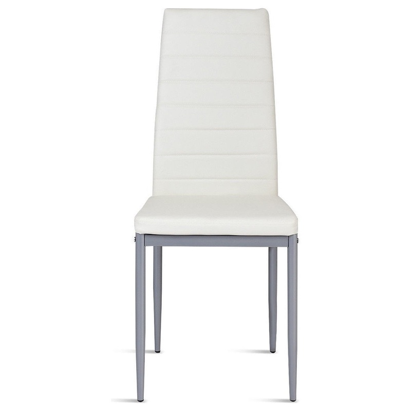 This is dining chairs set which will offer you a comfortable seating experience. Its simple but elegant design makes it perfect for home, restaurant, company use etc. It is in high quality and comes at a very good price. Waterproof and anti-aging PVC leather combining with heavy duty metal frame provides you years of durable use. Plus, ergonomic high curved back offers support for your spine. Add a touch of fashion to your dining room or restaurant with those elegant chairs. Bring them home and let them make you dining room a cozy place now.