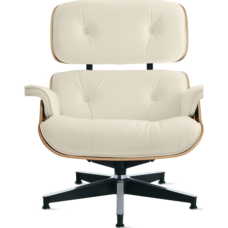 Charles and Ray Eames had ideas about making a better world, one in which things were designed to bring greater pleasure to our lives. Their iconic Eames Lounge Chair (1956) began with a desire to create a chair with the warm, receptive look of a well-used first basemans mitt. The result embodies what it really means to lounge. In continuous production since its introduction, this chair is widely considered one of the most significant designs of the 20th century. Combining soft, inviting leather or mohair with the sleek form of molded wood, the Eames Lounge Chair is the culmination of the Eameses efforts to create a club chair using the molded plywood technology they pioneered in the 40s. Even today, each piece is assembled by hand to ensure the highest level of quality and craftsmanship, and youll be pleased to discover the chair gets even better with use and age. Cushions snap in and can be removed and changed. This is the authentic Eames Lounge Chair by Herman Miller. Ottoman not included.