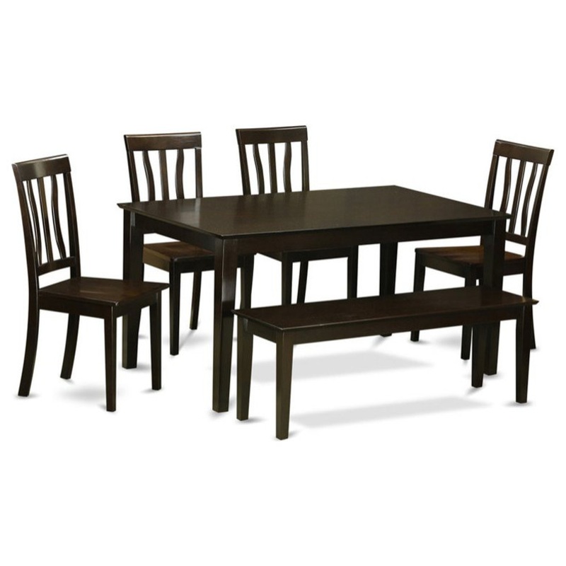 -This rectangular dinette set offer wooden dining chairs seat with trendy cappuccino finish legs, cappuccino finish rectangular kitchen table and hardwood 4 legs bench