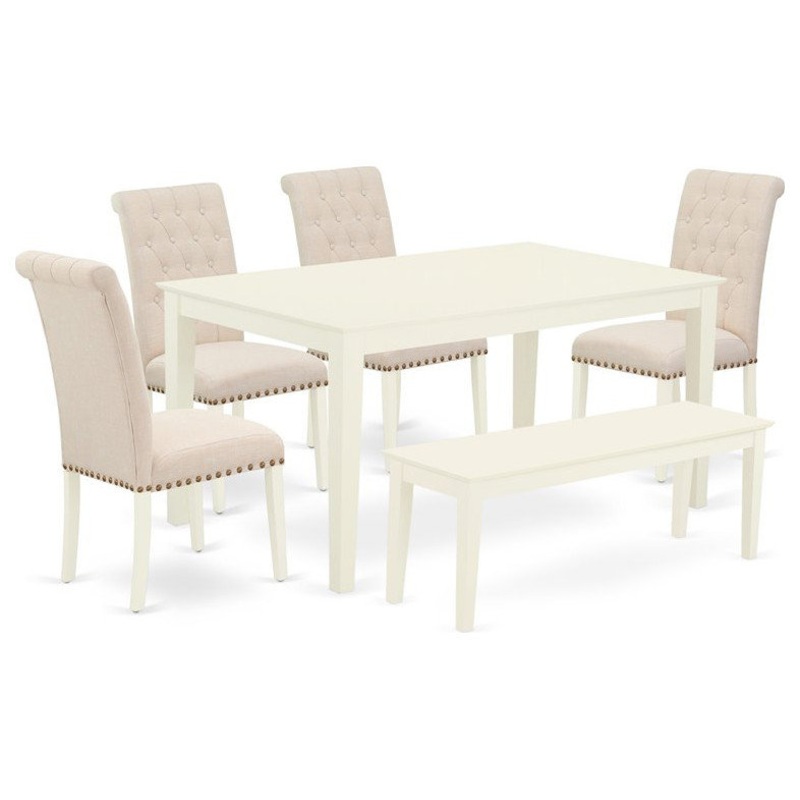East West Furniture Capri 6-piece Wood Dining Set in Linen White/Light Beige – Transitional – Dining Sets – by Homesquare