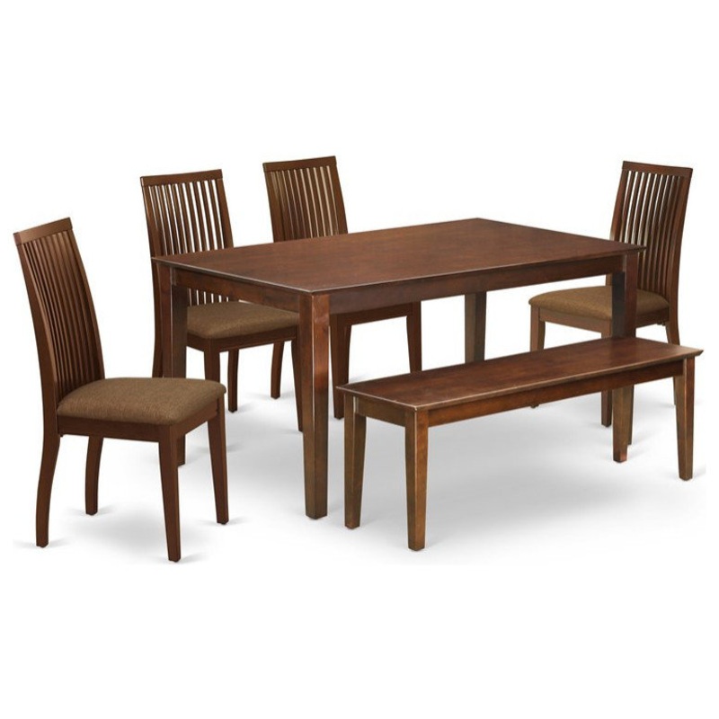 To give a distinctive and sophisticated look to your dining area, bring this exclusive CAIP6-MAH-C dining set includes a rectangular table, four parson chairs and a bench. The fresh and clean lines dominate the cutting-edge design of the rectangular dining
