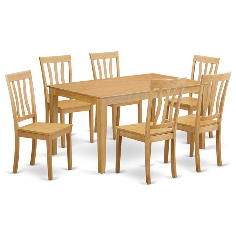 This amazing simple but charming 7 piece dining room table set will add ambiance and style to your dining-room. It contains a dining table and 6 beautifully crafted dining room chairs. The Dining room set can seat a maximum of six people. This set is created out of the popular Asian Hardwood, a solid Rubberwood that guarantee toughness and quality.