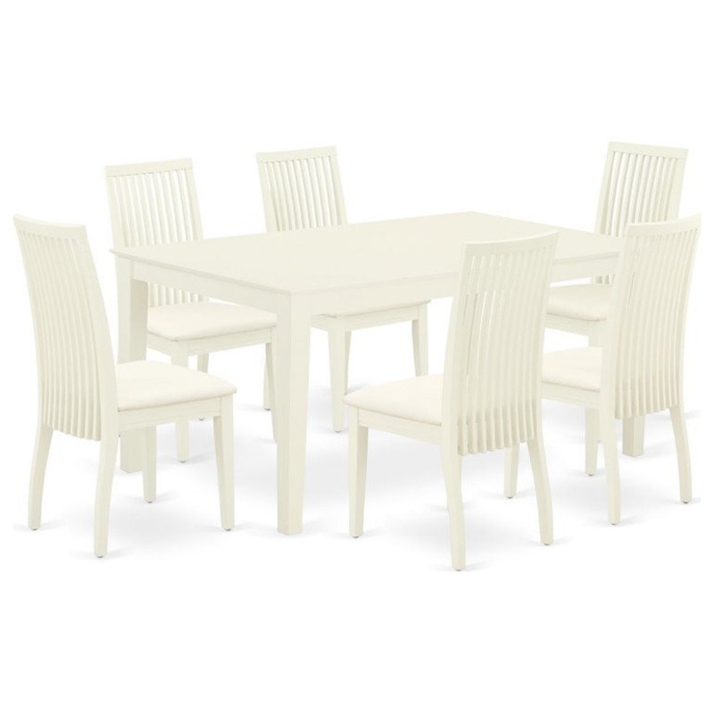 To give a distinctive and sophisticated look to your dining area, bring this exclusive CAIP7-LWH-C dinette set includes a rectangular table and six kitchen chairs. The fresh and clean lines dominate the cutting-edge design of the rectangular dining table.