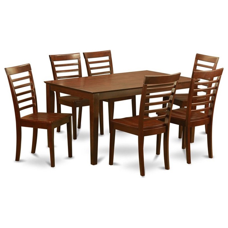 Dining table set can provide your kitchen innovative sophistication with a tasteful as well as smart aesthetic style. This amazing Capri dinette table along with dining room chair provides a wood top for a sophisticated, innovative look. Rectangle-shaped kitchen table along with four straight legs for a clean and innovative modern design and style. Dining chair with incredibly cozy ladder back match kitchen table. Dining chairs seat in either wood, upholstered, and last of all padded to suit taste and ideal theme. Finished in a vibrant and deluxe Mahogany.