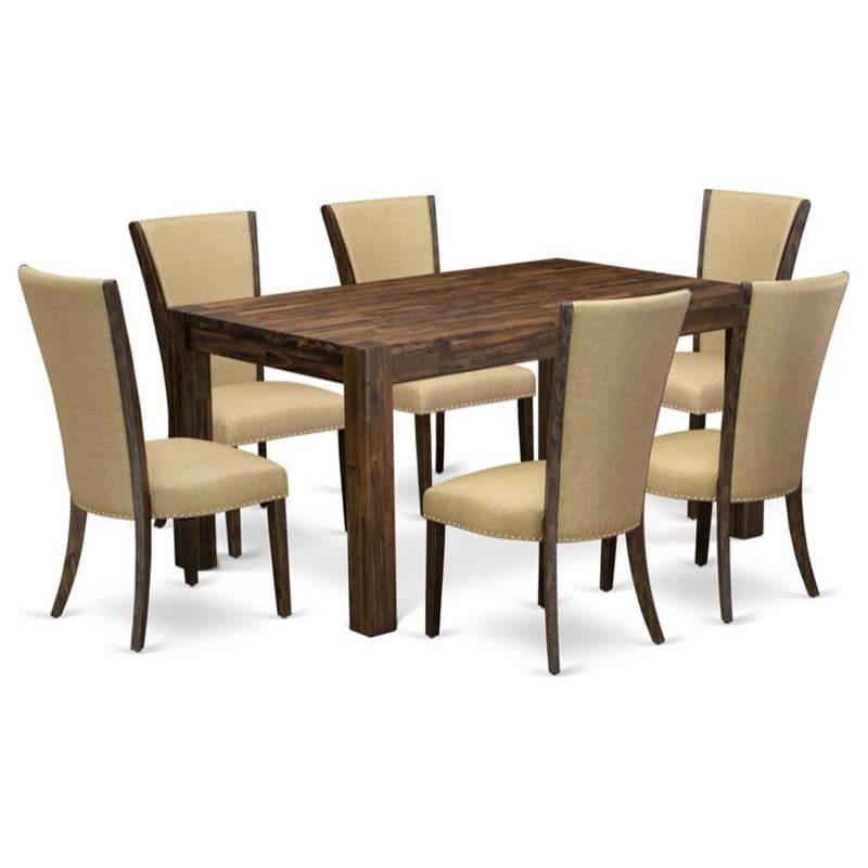 -7-piece dinette room set comes with a classy rectangular dining table and 6 high quality parson chairs