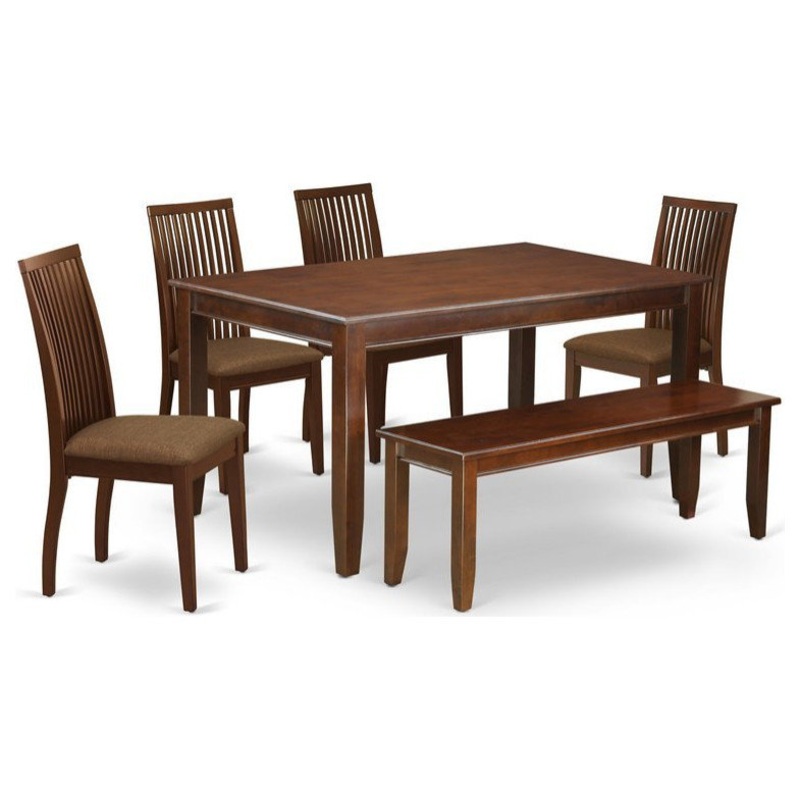 Furnish your dining area with this excellent classy DUIP6-MAH-C dinette set includes a rectangular dining table, four dining chairs and a bench. The traditional style and design of this dining set corresponds all sorts of dining decor concepts and assures