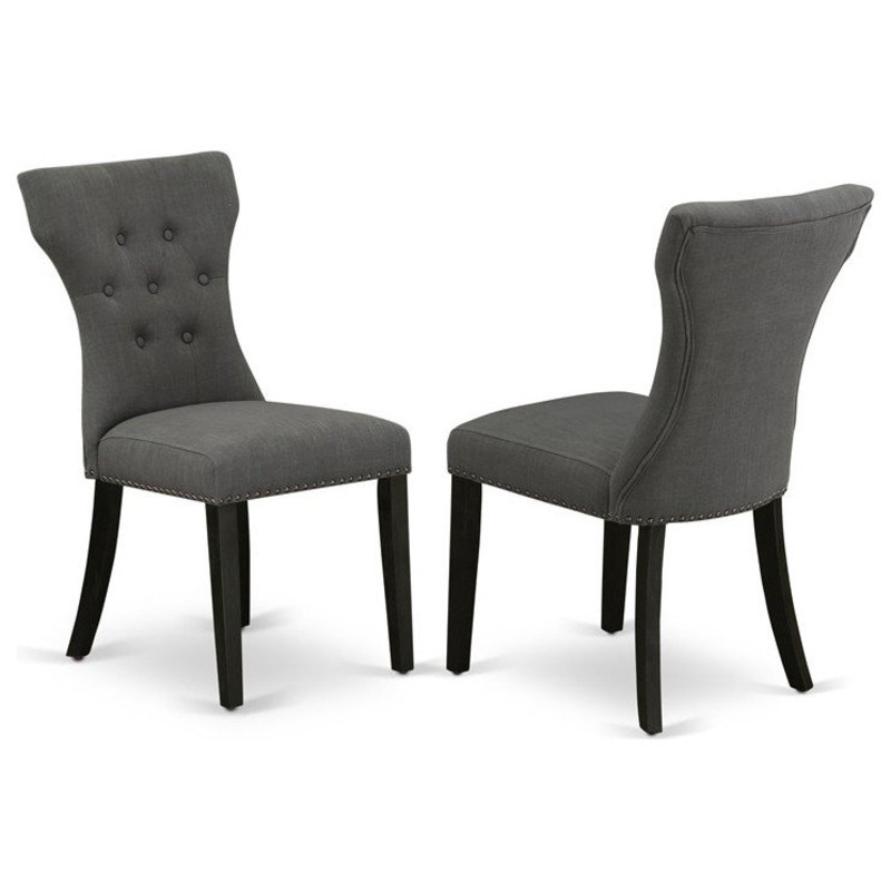-East west furniture dining chair set – dark gray linen fabric seat and black hardwood structure country dining chairs set of 2