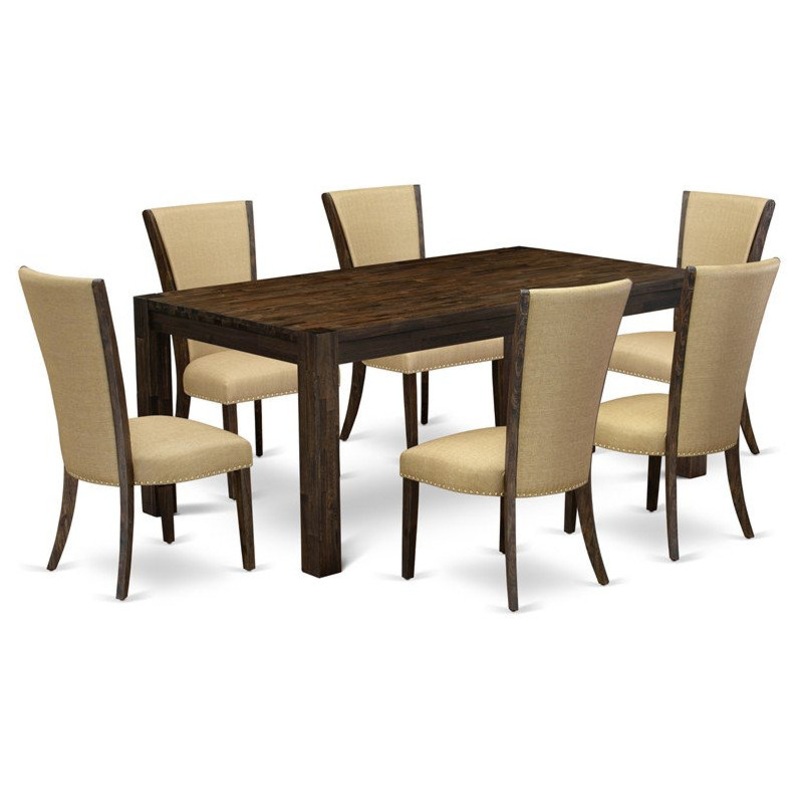 Introducing East West furniture’s brand new Lismore home furniture set that can turn your house into a home. This exclusive and sophisticated dining set includes a kitchen table combined with Parsons Dining Chairs. Impressive wood texture with Distressed Jacobean color and the rectangular shape design describes the stability and longevity of the dining table. The perfect dimensions of this dining table set made it quite simple to carry, clean, assemble and modify its places. Crafted from Asian tropical hardwood also known as rubberwood, the dining table can be assembled without any extra tools and made to last for a long. Bring these comfy parson chairs in your dining room which add a timeless elegance to your dining room and are easy to incorporate into just about any existing style or future decorating plan! Tall back, upholstery, high-density foam padding, solid hardwood frame construction, and linen upholstery make these parson chairs comfortable, durable and attractive. The curved design of the chair with Brown color fabric and Distressed Jacobean finish frame has made the chair modern and elegant. Whether you use this dinette chair in your dining room, kitchen, living room or basement, it is an easy to assemble and stylish answer to your seating needs.