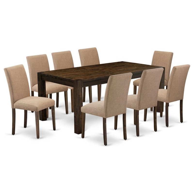 East West Furniture Lismore 9-piece Wood Dining Set in Brown/Light Sable – Transitional – Dining Sets – by Homesquare