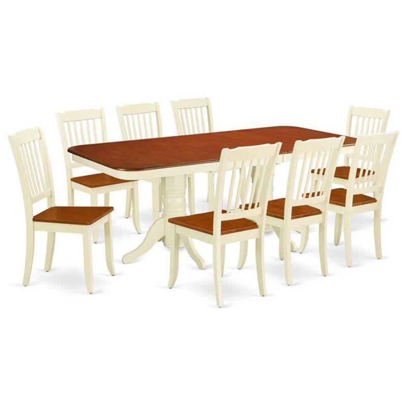 -9 piece dining room set-rectangular dining room table with leaf as well as eight kitchen area dining chairs in buttermilk finish