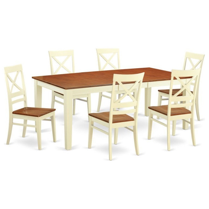 -Include: 7 piece Quincy rectangular dining set table 40in x78in and 6 chairs in buttermilk and cherry finish