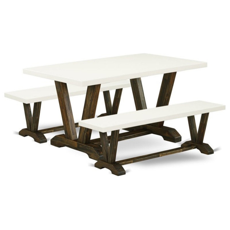 The Innovative 3 Piece dining set is consisting of 1 rectangular dinning table and 2 matching kitchen benches. This Linen White small kitchen table makes its appeal more attractive. Our table bench adds a sense of sophistication and the modern design is compatible seamlessly with any dining decor. The rectangular tabletop is created from fine quality Rubber Wood material that helps for heightened durability and long-lasting use. This contemporary, budget-friendly, durable, and comfortable dining room table set can be a great choice if you are appearing for a great eating time experience with family and friends. Fabulous fixed tabletop design, superior quality colors, and robust premium hardwood made it the ideal dining table for your kitchen area and supply perfect stability to this dinning table. Simplistic and easy-to-move design is full of elegance and charm. Its perfect dimensions are suitable for most dining rooms, dont hesitate to bring it home and enjoy it.