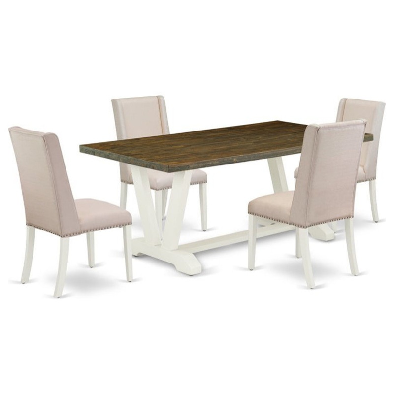 East West Furniture V-Style 5-piece Dining Set with Cushion Seat in White – Farmhouse – Dining Sets – by Homesquare