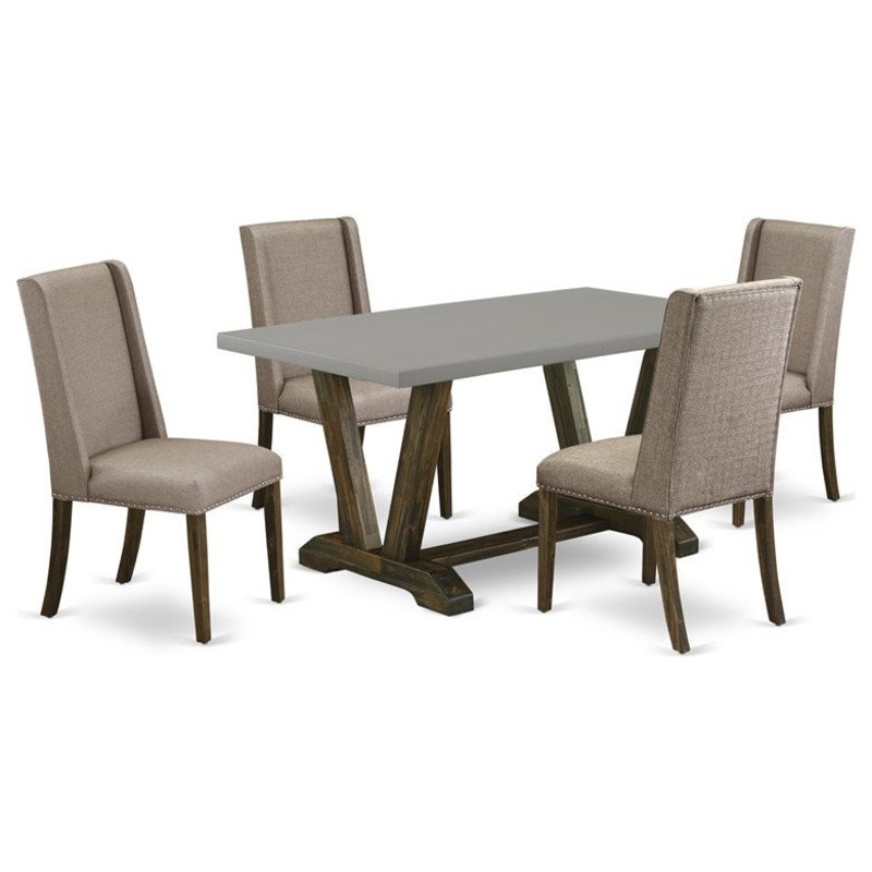 This dinette set includes 4 awesome Kitchen Parson Chairs and an amazing dining table. This dining table is offered in an elegant Distressed Jacobean finish. In addition, the Upholstered Dining Chairs in a Dark Khaki linen fabric to enhance the elegance of any kitchen or dining room. Our modern dining table set delivers great durability because this kitchen table is built from high quality Asian Wood which can bear the weight of 3 Lbs. We have created these Upholstered Dining Chairs and dining room table with the help of highly experienced carpenters, who generate a smooth and high-end finish to this dining room table set. We try to offer innovative as well as easy to assemble products. Our high-quality rectangular dining room table set is perfect for you and your beautiful dining area as well as the kitchen area. You can use it for casual home parties or intimated gatherings. Keep enjoying East West modern furniture!