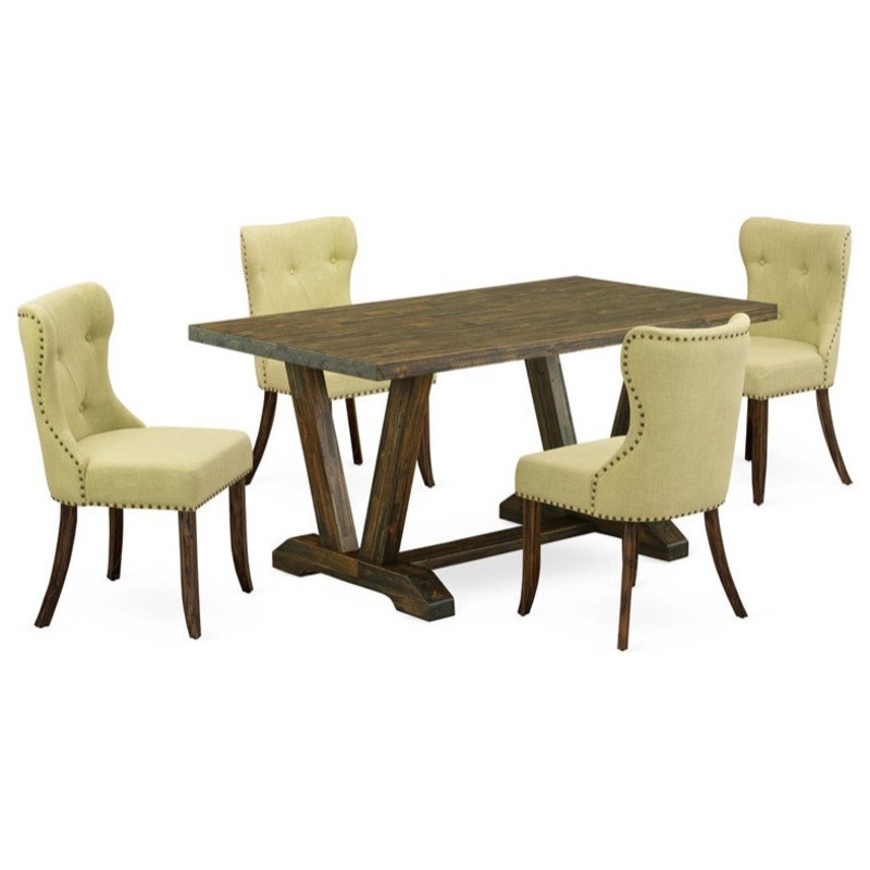This 5-pc kitchen room table set includes 4 parson dining chairs and 1 rectangular table. These parson dining chairs have a Linen Fabric seat, Button Tufted Chair Back, and the rectangular table includes a rectangular top and Wooden Legs. The mid century dining chairs seat and the chair back is constructed from Linen Fabric in a Limelight color padded parson chairs solid wood structure and the Linen Fabric seat is quite easy to clean. You can clean dust easily and frequently to save time by using a damp cloth. These padded parson chairs and the dining room table is the perfect choice for your dining room or kitchen. The simple structure of the dining chair and the rectangular dining table as well as screws of the same size that allow a simple and fast setup.