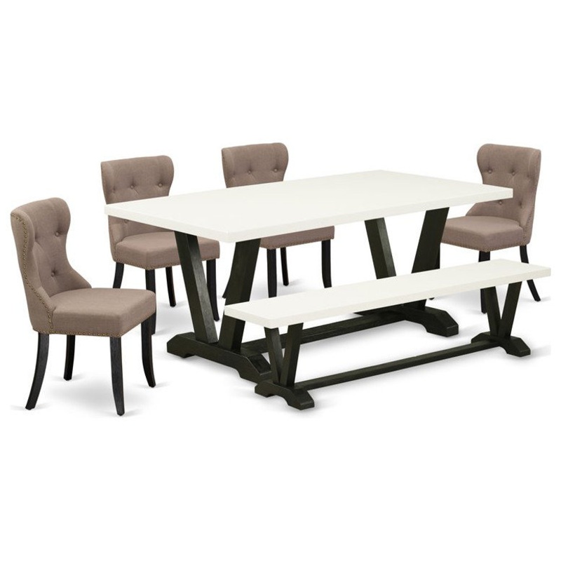 East West Furniture V-Style 6-piece Wood Dining Set in Linen White and Black – Transitional – Dining Sets – by Homesquare