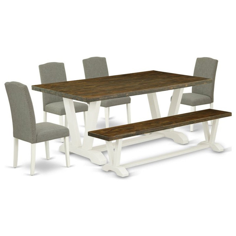 East West Furniture V-Style 6-piece Wood Dining Table Set in White/Dark Shitake – Farmhouse – Dining Sets – by Homesquare