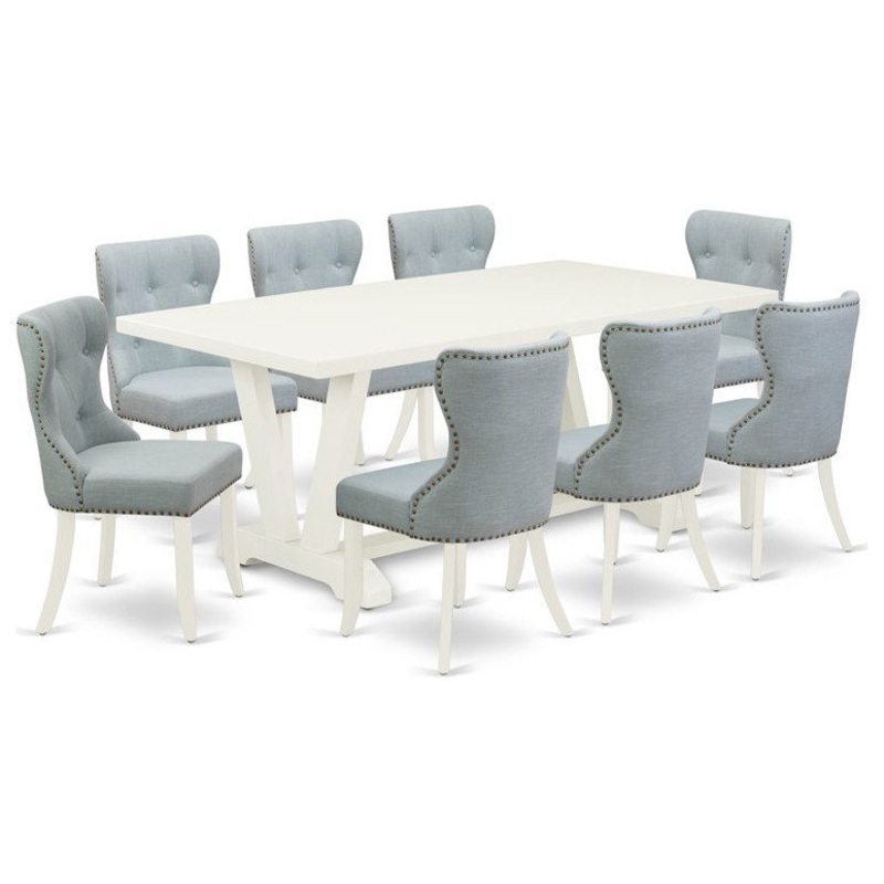 East West Furniture V-Style 9-piece Wood Dining Set in Linen White/Baby Blue – Transitional – Dining Sets – by Homesquare