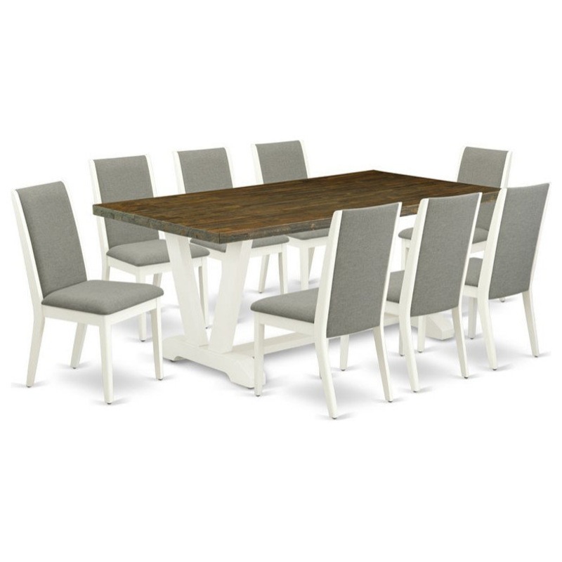 This modern dining table set includes 8 wonderful Padded Parson Chairs and an amazing modern dining table. This rectangular dining table is offered in an elegant Linen White finish. In addition, the Kitchen Chairs in a Shitake linen fabric to enhance the elegance of any kitchen or dining room. Our dining room table set provides great durability because this wood table is built from high quality Asian Wood which can bear the weight of 3 Lbs. We have created these Parson dining room chairs and a rectangular dining table with the help of highly experienced carpenters, who generate a smooth and high-end finish to this rectangular table set. We try to offer innovative as well as easy to assemble products. Our high-quality dining room table set is perfect for you and your beautiful dining area as well as the kitchen area. You can use it for casual home parties or intimate gatherings. Keep enjoying East West modern furniture!
