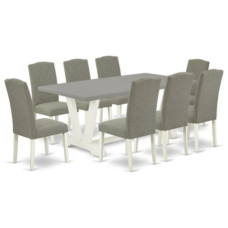 This dining set includes 8 gorgeous Upholstered Dining Chairs and an awesome modern dining table. This wood dining table is offered in an elegant Linen White finish. In addition, the Upholstered Dining Chairs in a Dark Shitake linen fabric to enhance the elegance of any kitchen or dining area. Our dinette set delivers great durability because this dining table is built from high quality Asian Wood which can bear the weight of 3 Lbs. We have created these Modern dining chairs and kitchen table with the help of highly experienced carpenters, who generate a smooth and high-end finish to this modern dining table set. We try to offer innovative as well as easy to assemble products. Our high-quality dinette set is perfect for you and your beautiful dining room as well as the kitchen area. You can use it for casual home parties or intimate gatherings. Keep enjoying East West modern furniture!