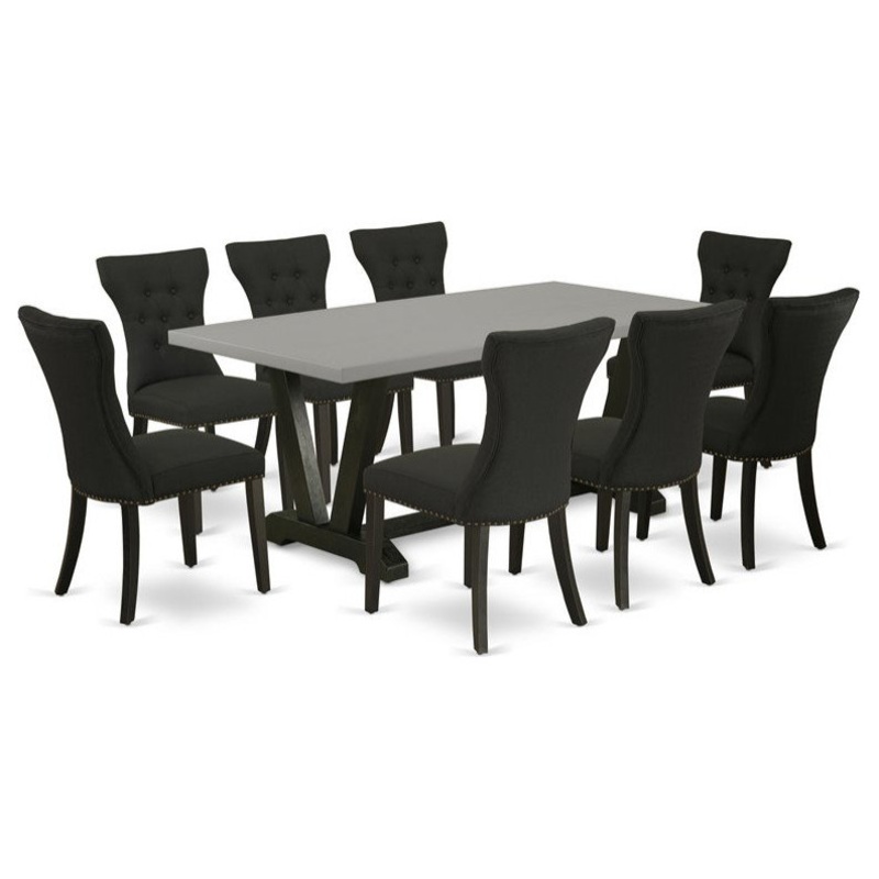 Our dining room set includes 8 mid century parson chairs and 1 rectangular dining table. This modern dining table has a rectangular table top and attractive legs. The hardwood frame and soft padded back ensure that these parson chairs sturdiness and offers decent support to your back, in addition to their ideal size these Urban Style chairs are trouble-free to construct and easy to rearrange. These simple but charming Upholstered Dining Chairs will add ambiance and style to your dining room. Provide your home a pop of chic style with this must-have modern dining table set. A contemporary twist on a classic design, this eye-catching kitchen dining set design will liven up any timeless appeal. Just by switching out your chairs and kitchen dining table, you can effortlessly refresh your dining space. This kitchen table set is very easy to build. You only need around 1 hour to build this dining room set. This dining table set comes with all the necessary hardware to put together this modern dining set. These upholstered dining chairs are easy to carry or move around. Enjoy with East West Furniture!